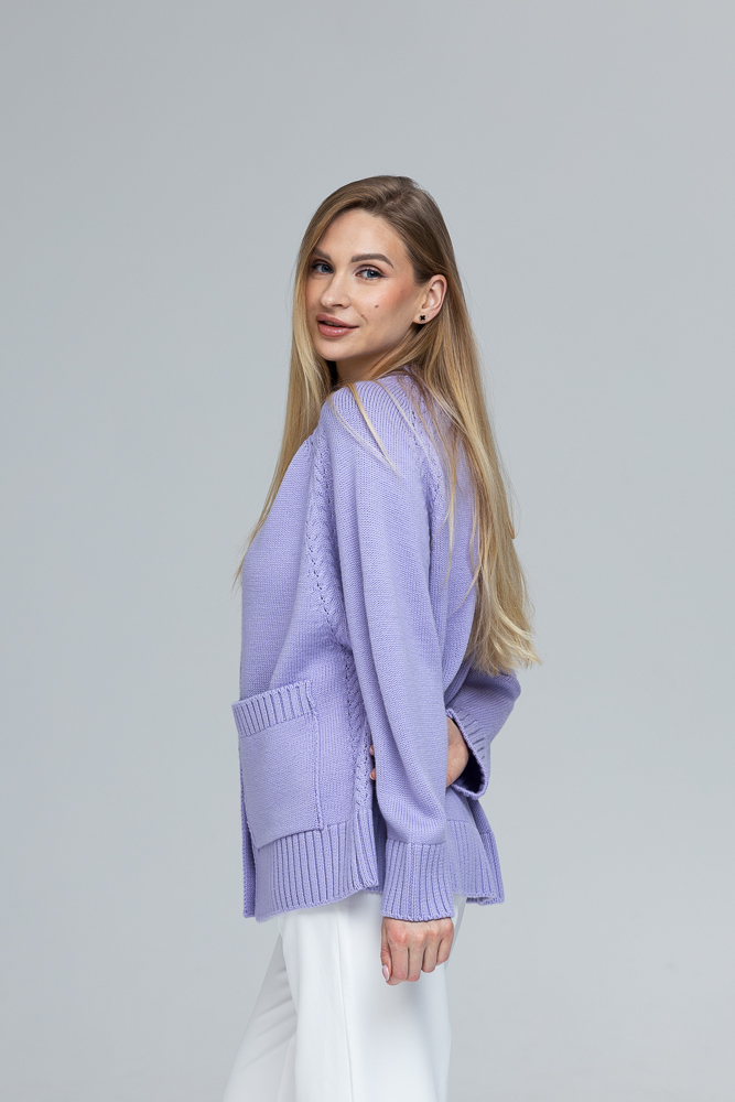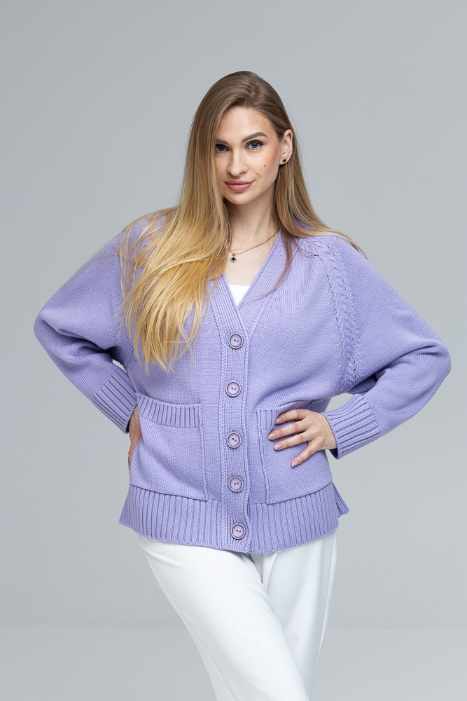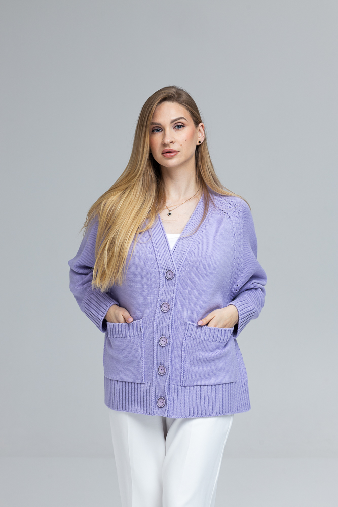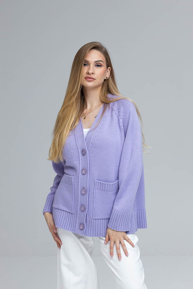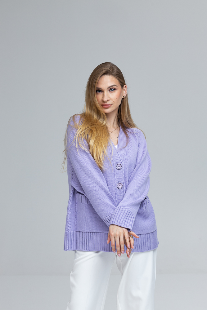 Modele ir 170 cm gara, XS izmērs un uzvilts kardigāns ONE SIZE izmērs